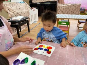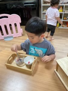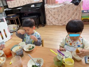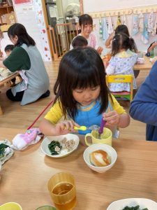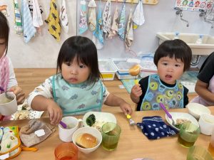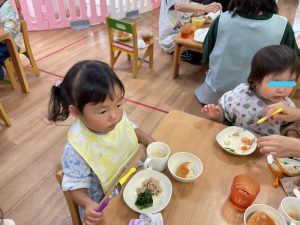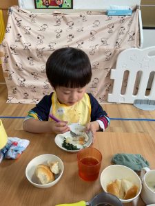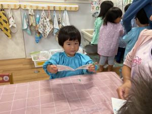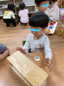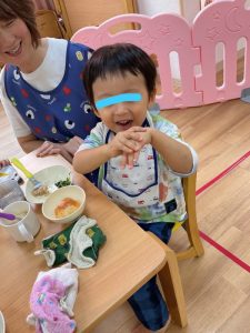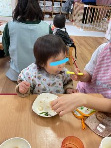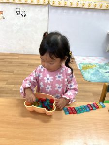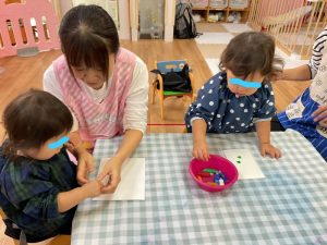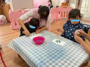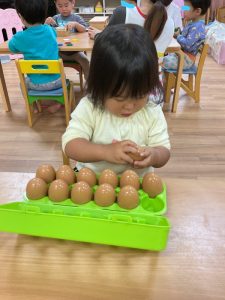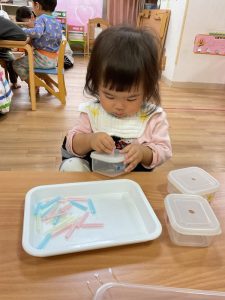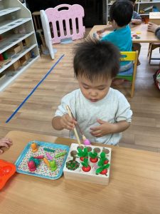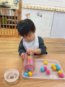 ピンポン玉をレンゲですくったり、トングで挟んで遊びました(^^♪