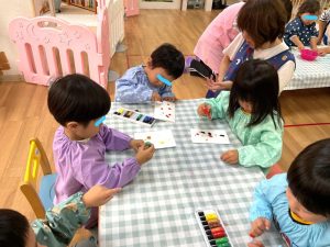 英会話の後は、紙コップにマスキングテープ貼ったり…