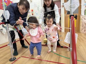 ワニの一本橋、クモの巣くぐり、虫トンネル、みんなクリア出来るかな?
