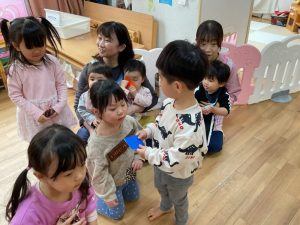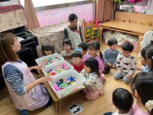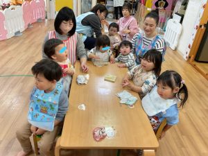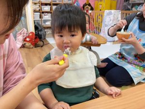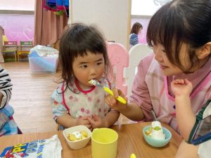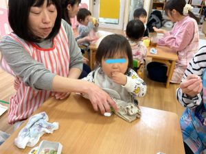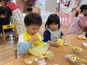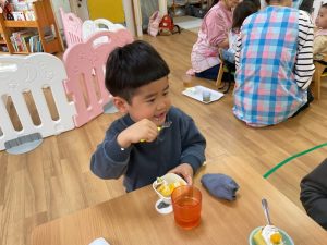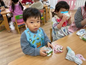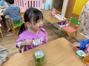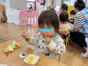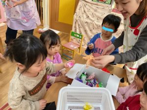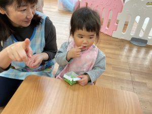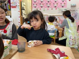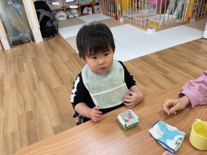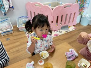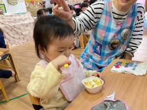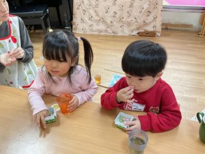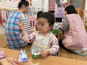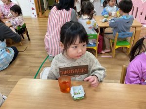 初めて食べるひなあられに、少し警戒する子も居ました💦