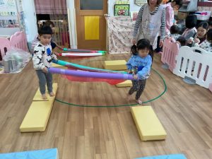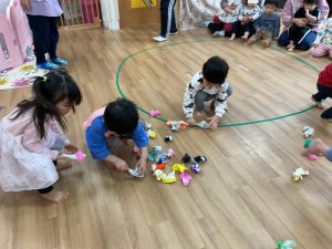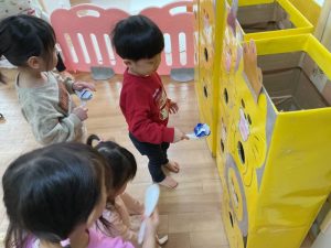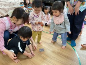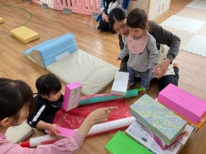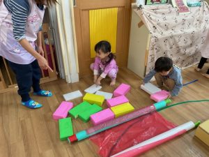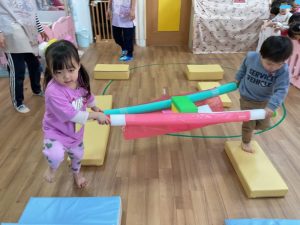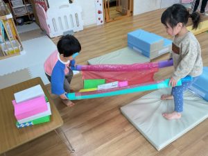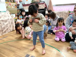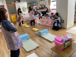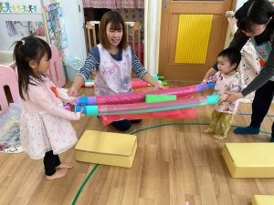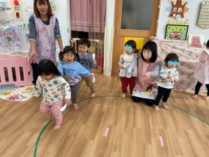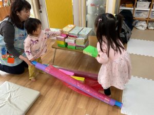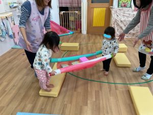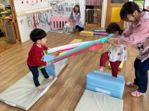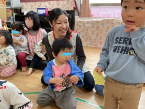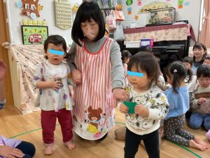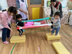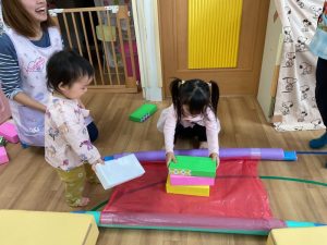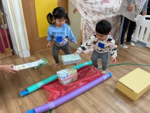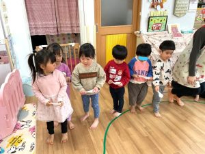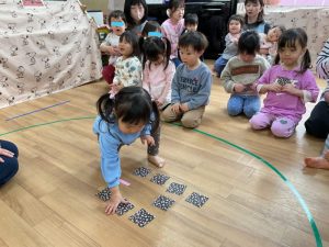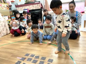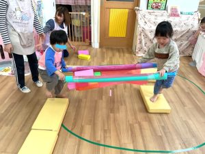 ひしもちを作り、障害物を乗り越えながら頑張ってひしもちを運びました(‘◇’)ゞ