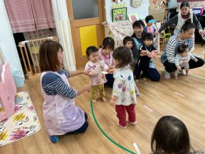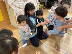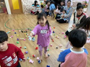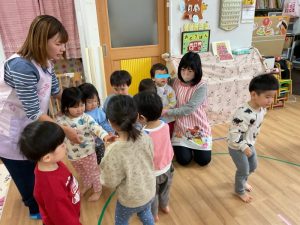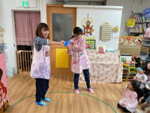 最後は、同じペアで「ひしもち作りゲーム」をしました。