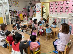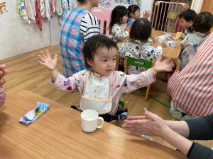 「今日の朝おやつは、特別にひなあられをたべまーす」