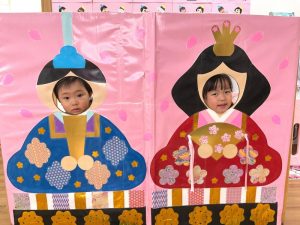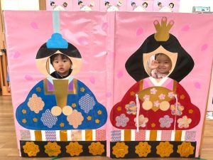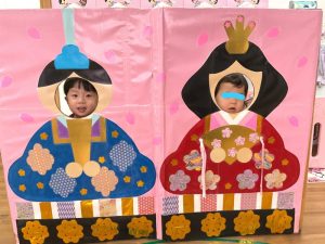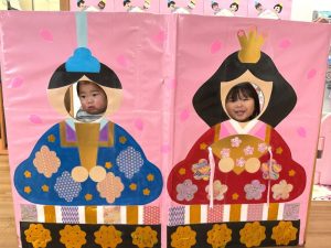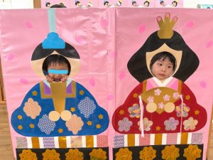 そのペアで、ひなまつりの顏はめパネルをしました♪