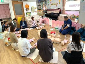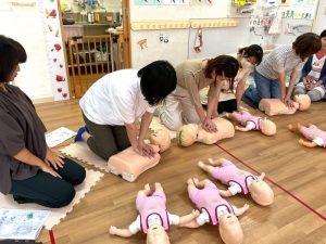 一分間胸骨圧迫を行い、リズムを体に覚えさせましたが、とても大変でした💦