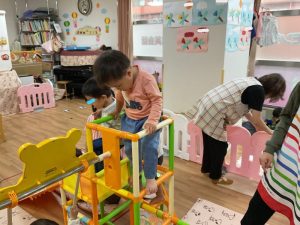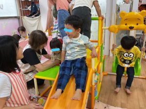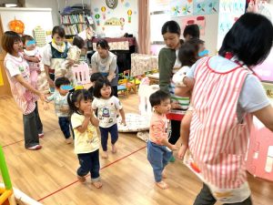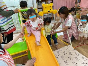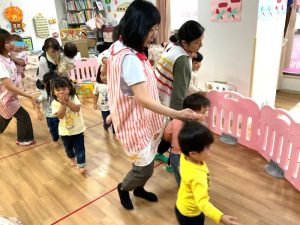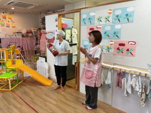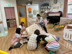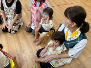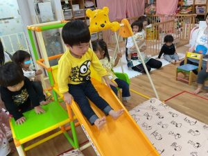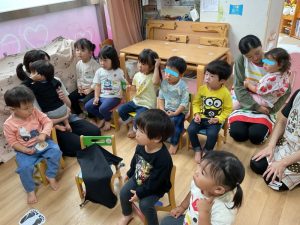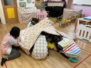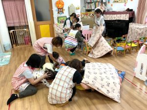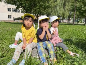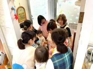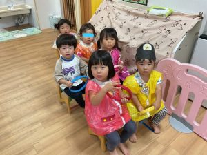 揺れが収まったので、園外に避難しました。(雨だったので玄関先まででした💦)