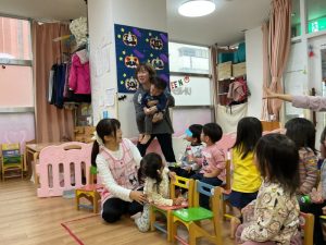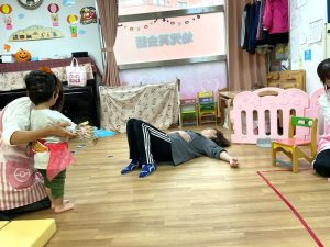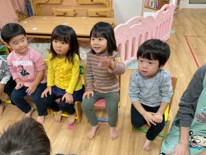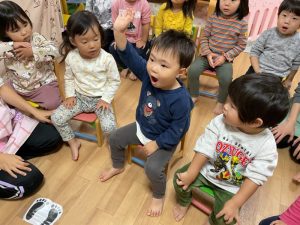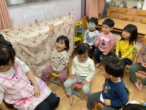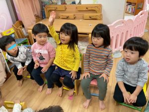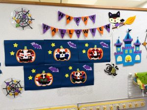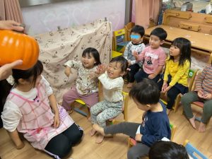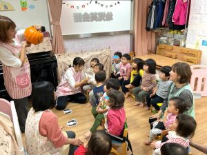 朝の会です♪みんながお返事をすると、ジャックオランタンが光りました✨