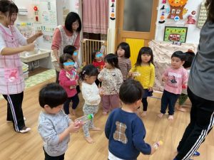 今日で登園最後の園児さんのお別れ会をしました(‘◇’)ゞ