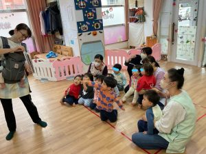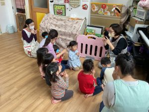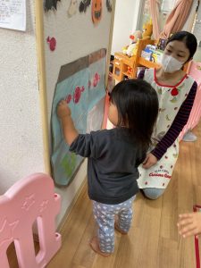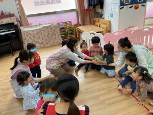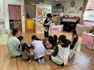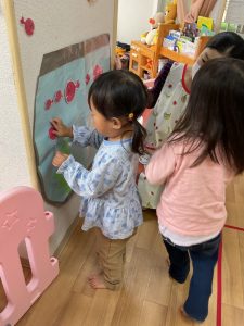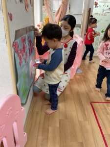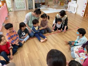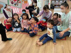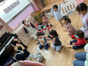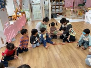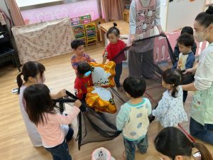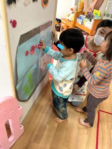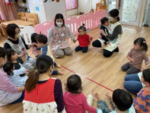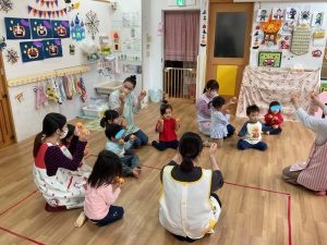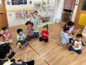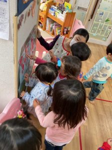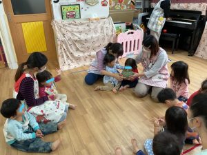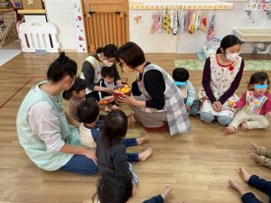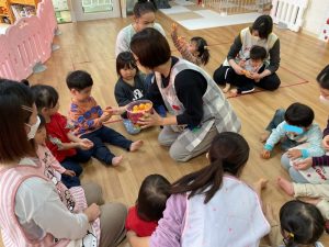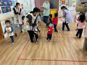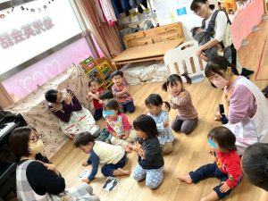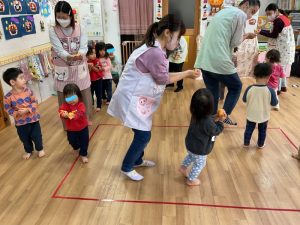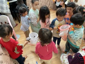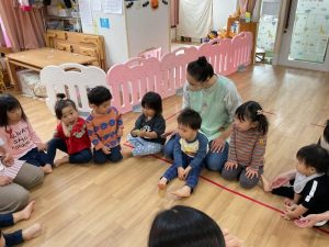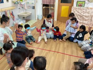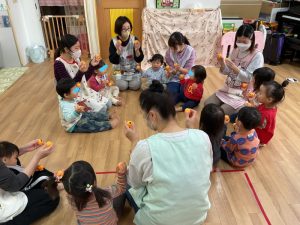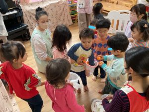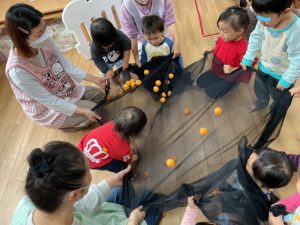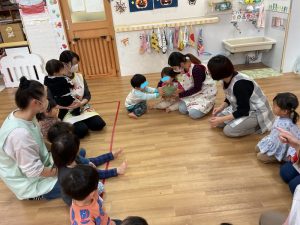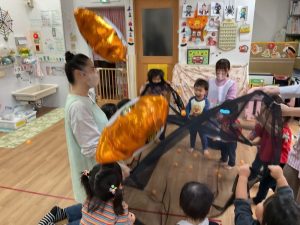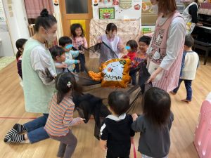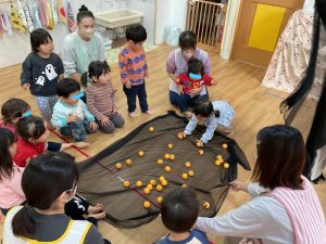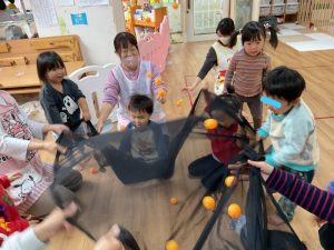 布の上にボールやバルーンを乗せて、ポーンと飛ばします(*^^*)