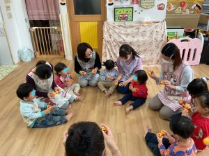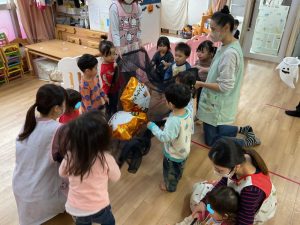 ハロウィンなのでジャックオランタンのボールが配られました(*’▽’)