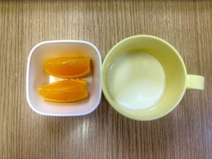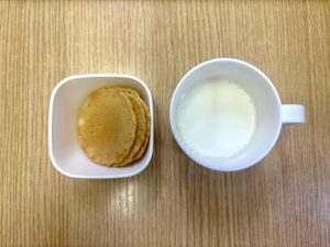午後おやつは、牛乳、カルシウムせんべいでした。