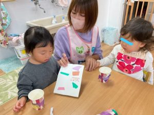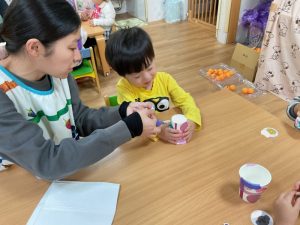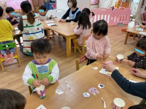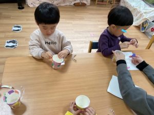 英会話の後は、紙コップにマスキングテープ貼ったり…