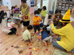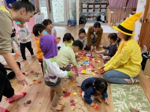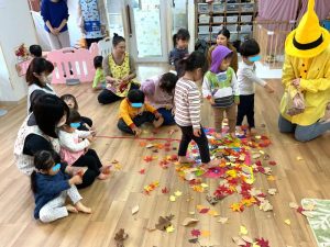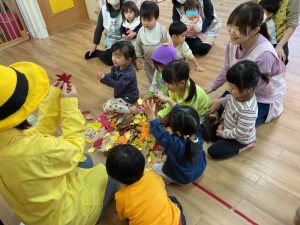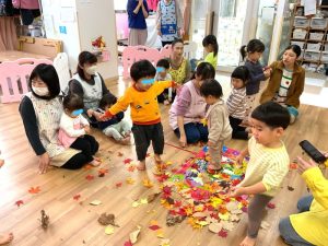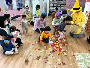 落ち葉をぺたぺた貼って、ハリネズミを完成させます✨
