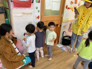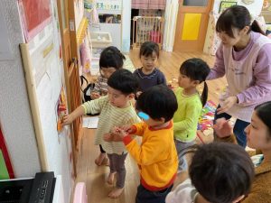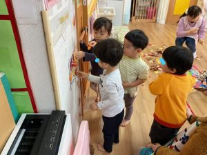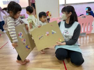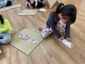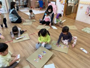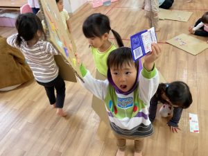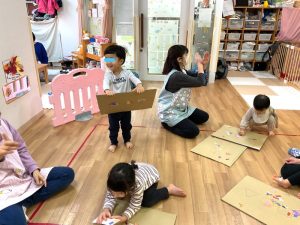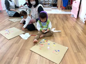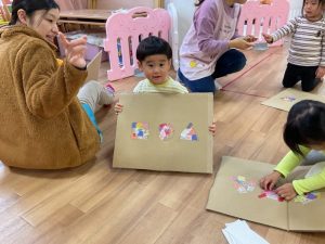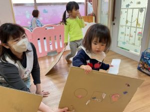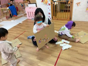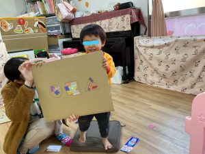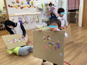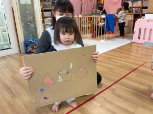 英会話後は段ボールにマスキングテープを貼りました(^_-)-☆