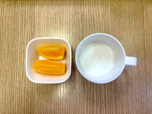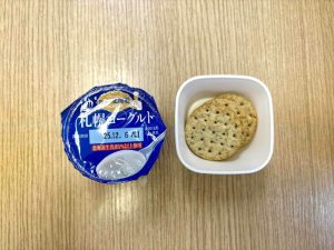 午後おやつは、ヨーグルト、鉄強化クラッカーでした。