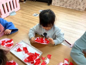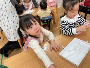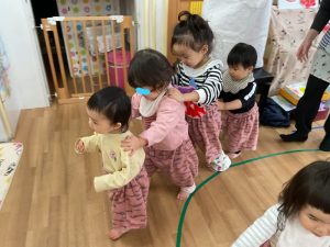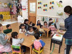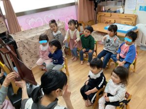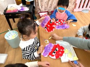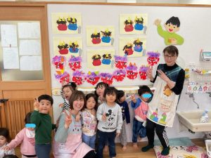 朝の会では節分に向けて「まめまき」や「鬼のパンツ」を歌いました♪