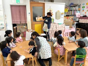 避難訓練があったので、地震の紙芝居を見ました(^^)/