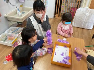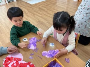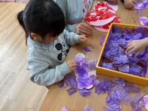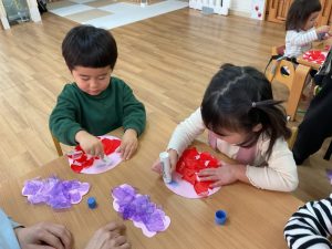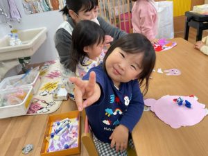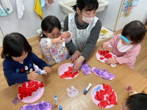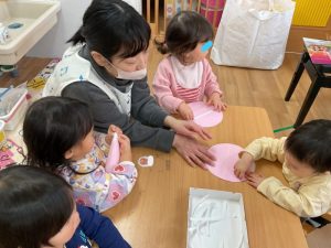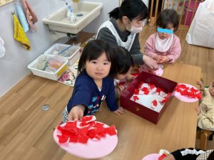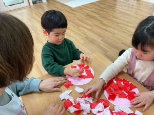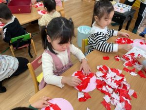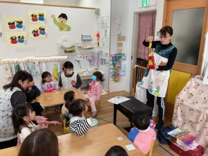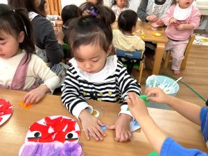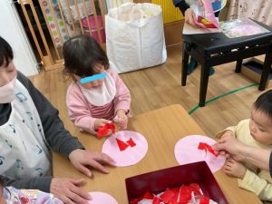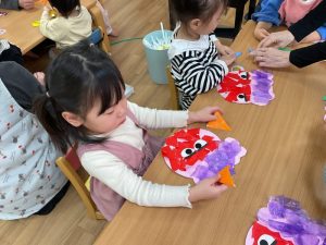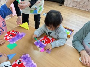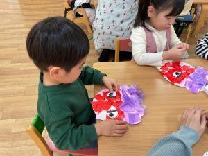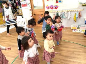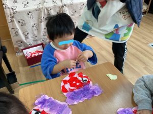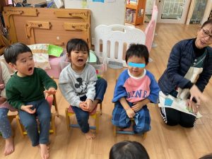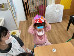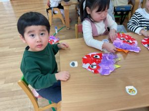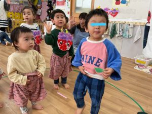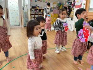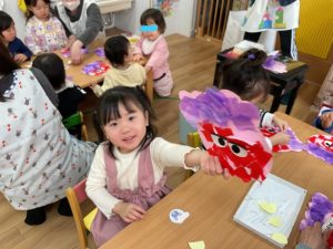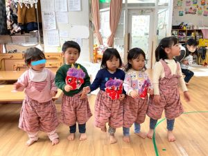 朝の会では節分に向けて「まめまき」や「鬼のパンツ」を歌いました♪