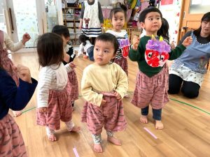 みんなで鬼のパンツを履いて、「おにのパンツ」を踊りました♪