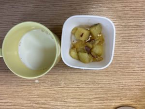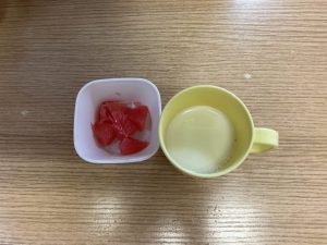 朝おやつは、牛乳、グレープフルーツでした。