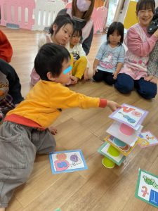 みんなで協力して高く積み上げていきました(‘◇’)ゞ