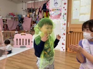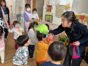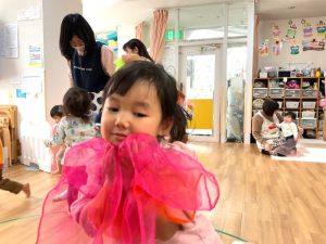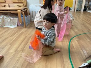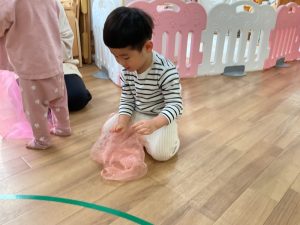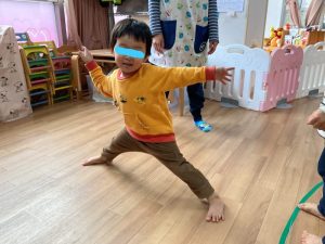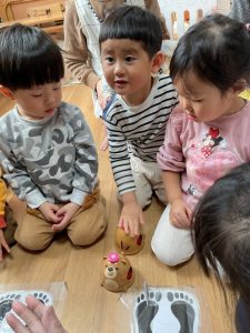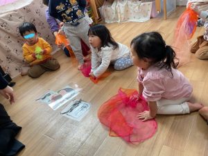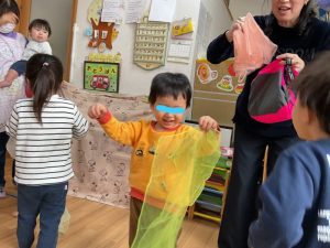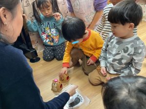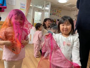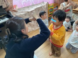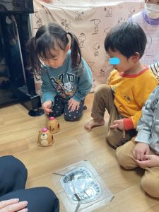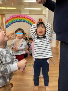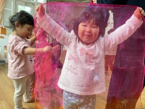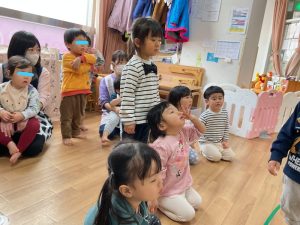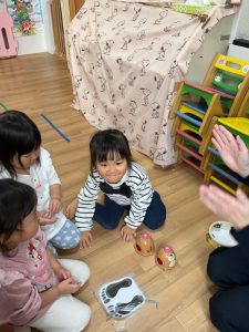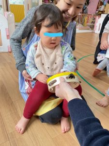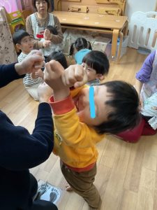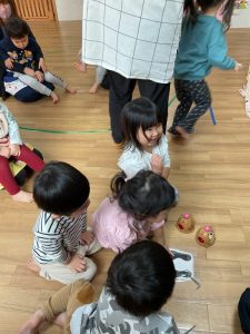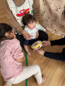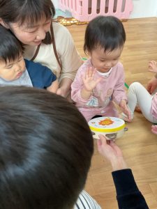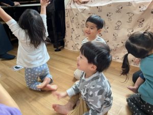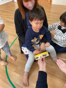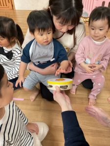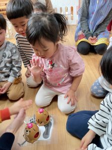 リトミックの先生の真似をして、「チーン、チーン」と音を鳴らします(^^)/