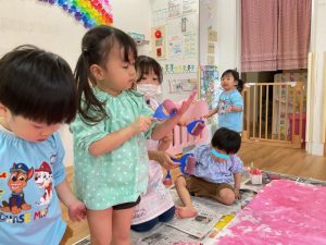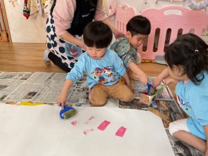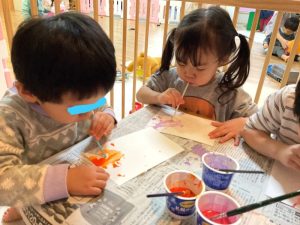 リトミックの後は、卒園式に向けて、卒園児・在園児製作をしました💓