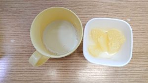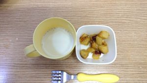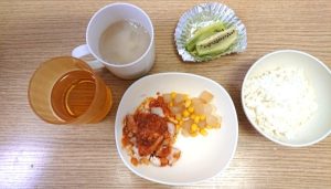 給食は、ご飯、みそ汁(白菜・ふのり)、さばみそ焼き、人参ピースグラッセ風、オレンジでした。