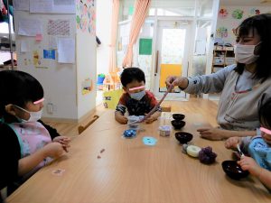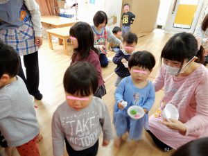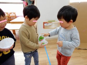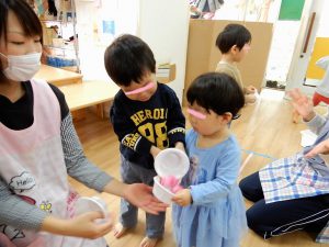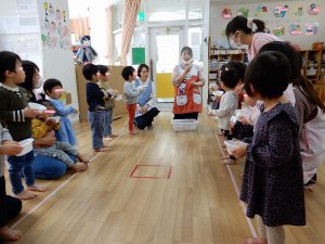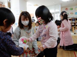 隣のお友だちに雛あられリレーをしました(*^▽^*)