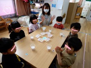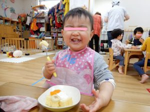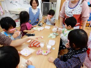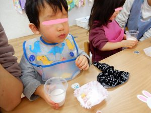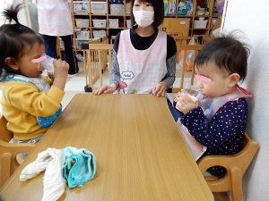 では、手を洗いに行きます(^^)/ みんなも雛あられをいただきます(^^)/