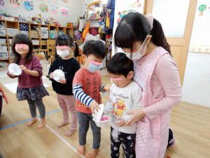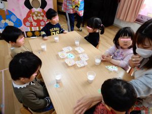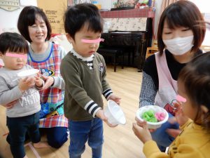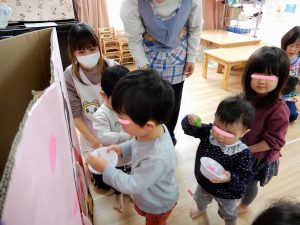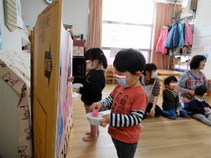 隣のお友だちに雛あられリレーをしました(*^▽^*)