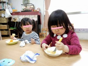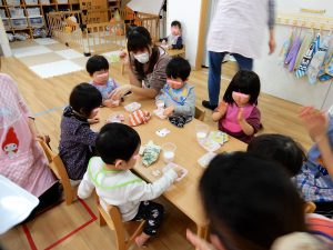 では、手を洗いに行きます(^^)/ みんなも雛あられをいただきます(^^)/